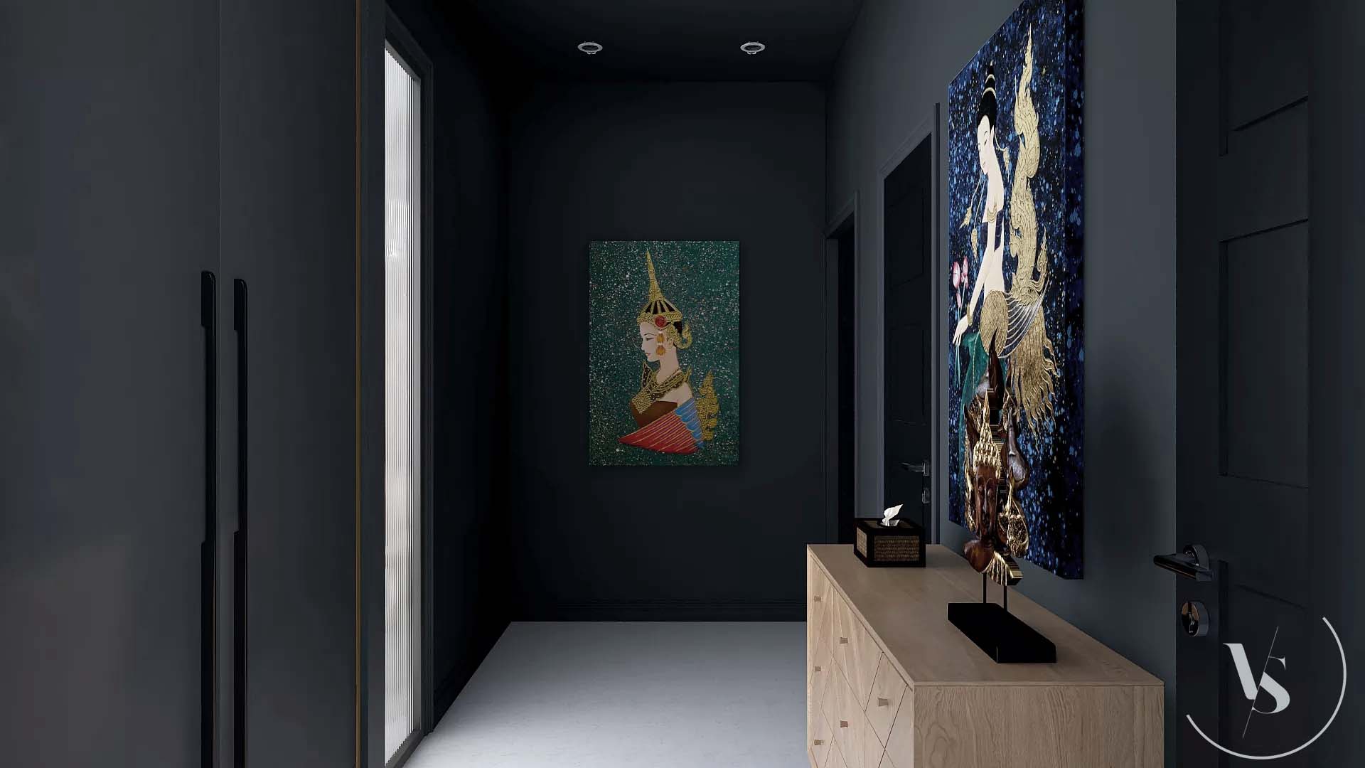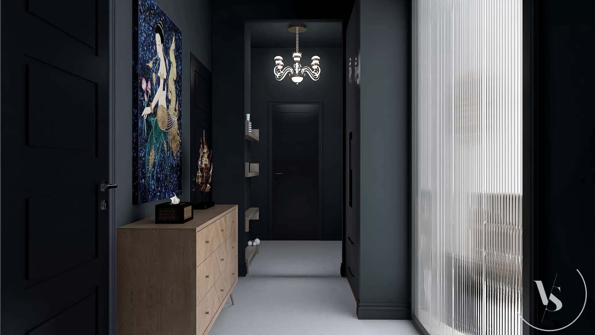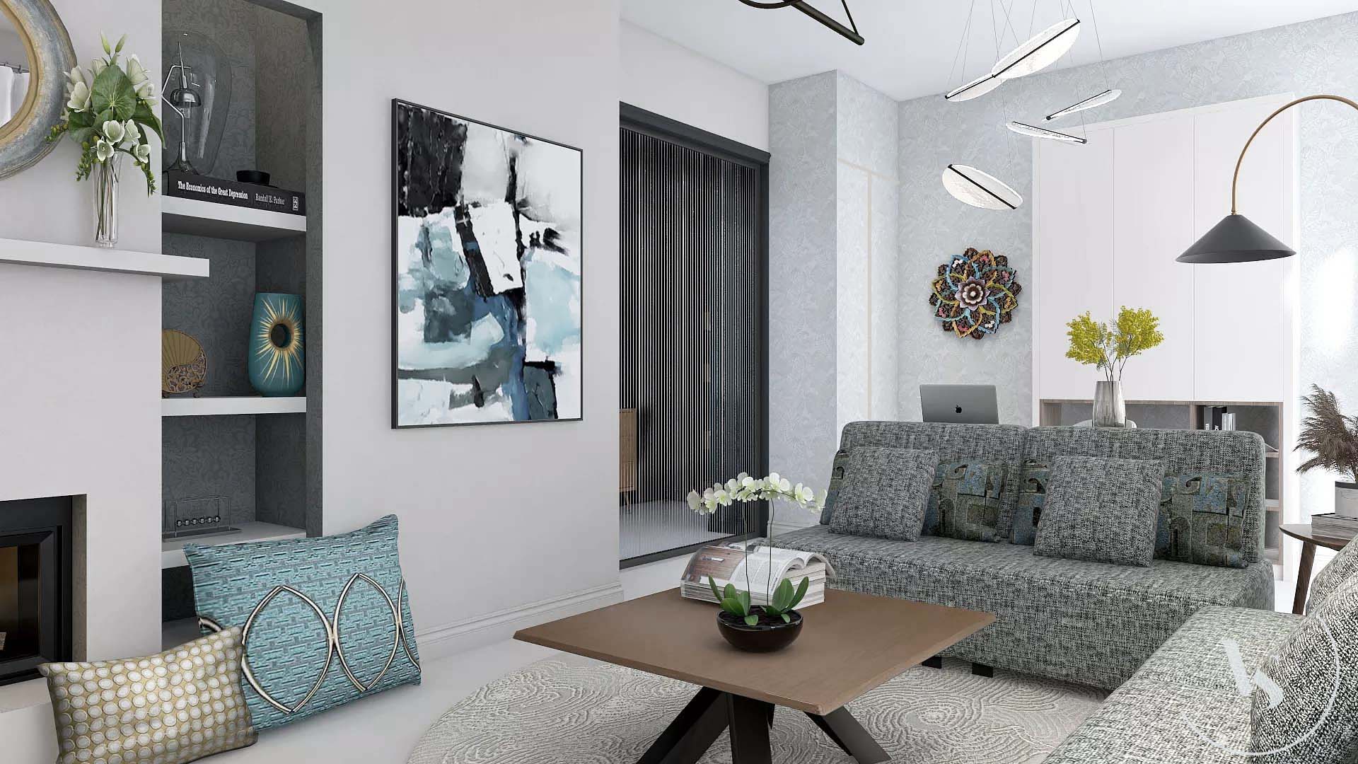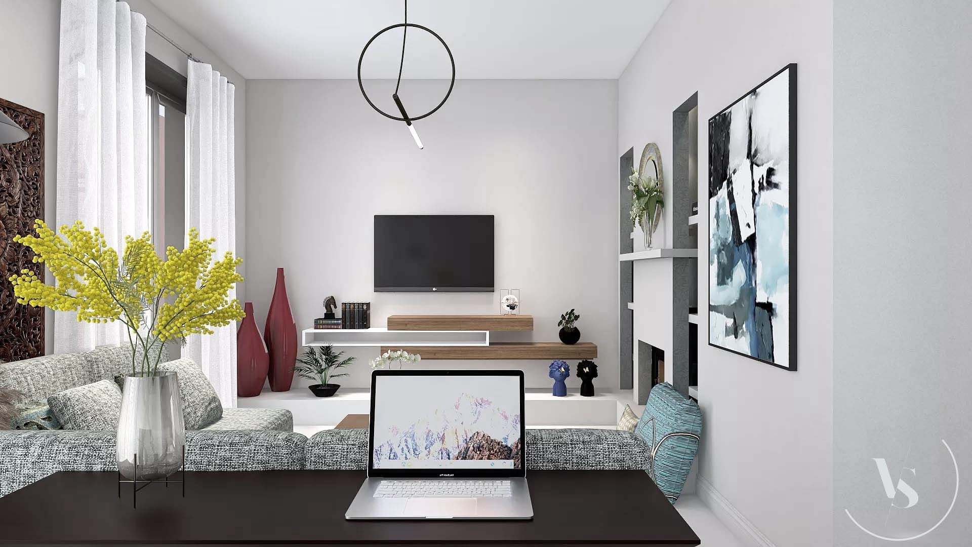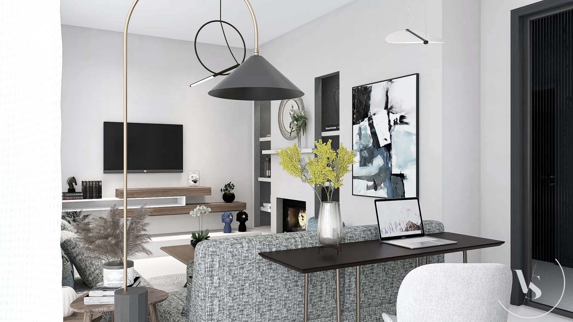Progetto soggiorno e ingresso in stile marocchino moderno.